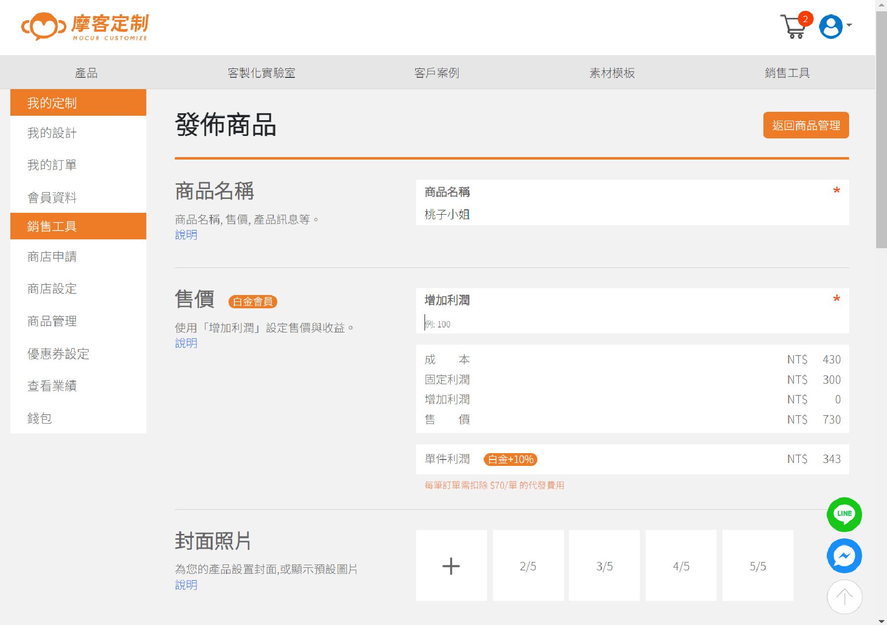 使用「增加利潤」自由設定售價與收益。